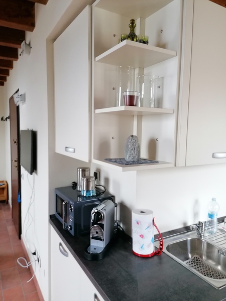 lenzuola.E' inoltre fornito di servizio di pentole, accessori cucina, servizio di piatti, bicchieri, posate, bollitore , macchina del caffè nespresso, lavastoviglie, phon.